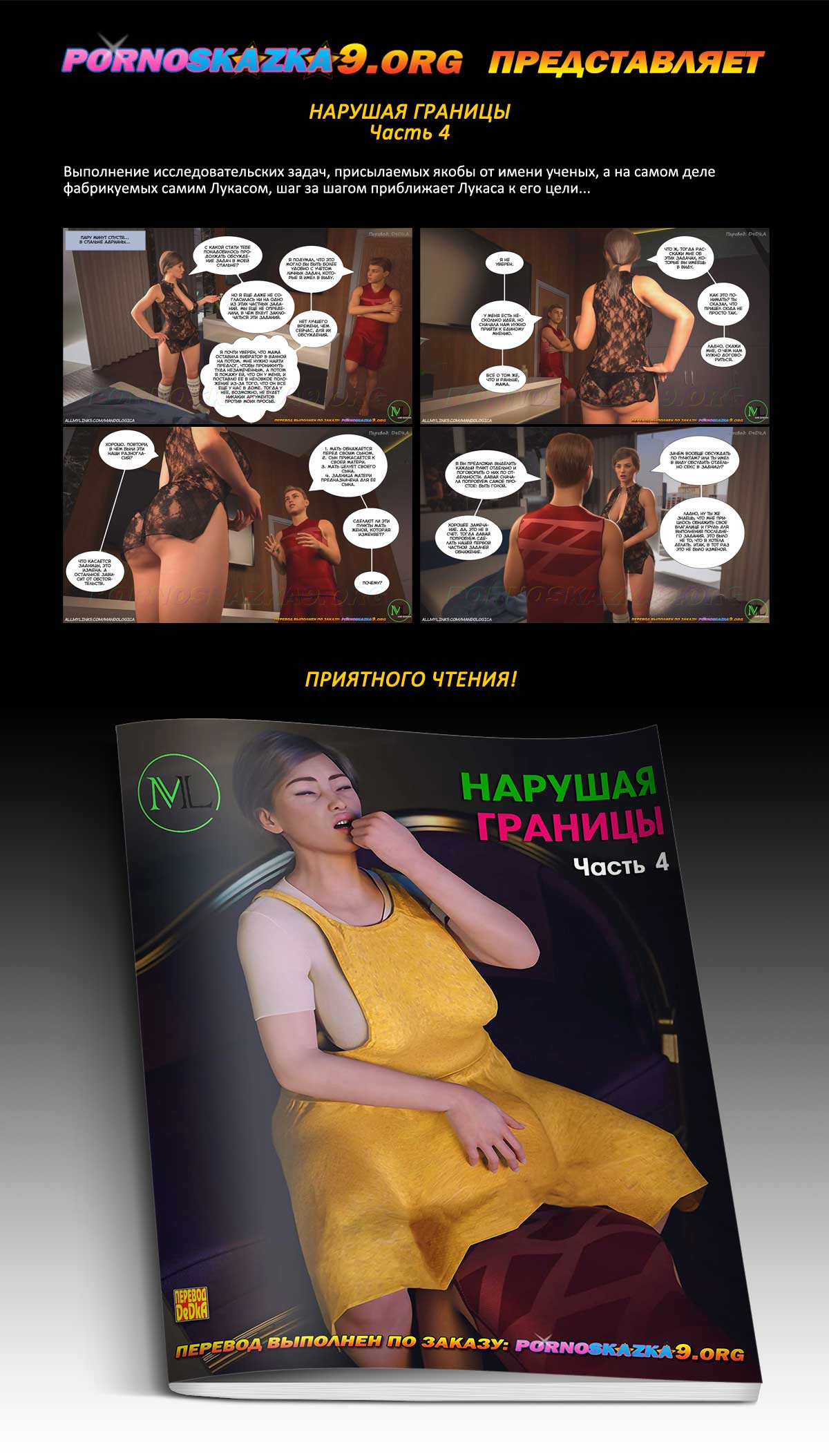 Порно комикс «Нарушая границы. Часть 4. Выполнение исследовательских задач, присылаемых якобы от имени ученых, а на самом деле фабрикуемых самим Лукасом, шаг за шагом приближает Лукаса к его цели…